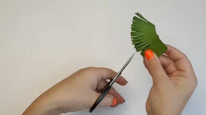 Креповую или гофрированную бумагу сверните и надрежьте.