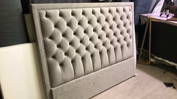 Роскошное мягкое изголовье с каретной стяжкой готово!