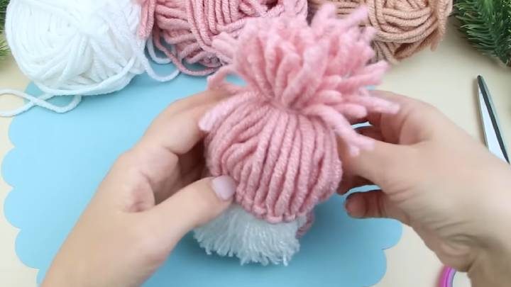 Обмотайте кончики розовой пряжей, как варежки.