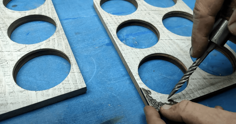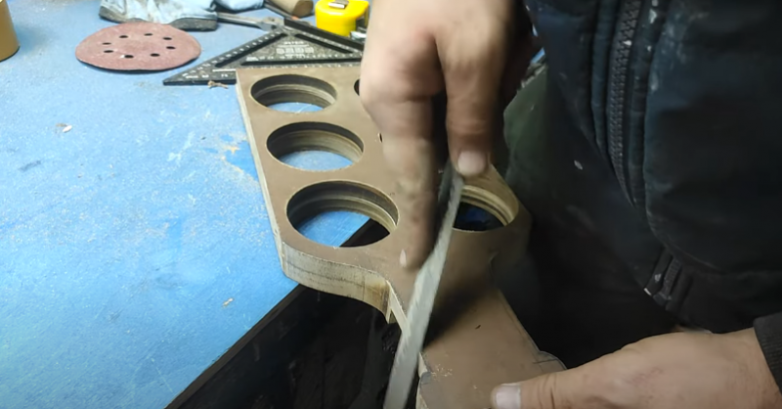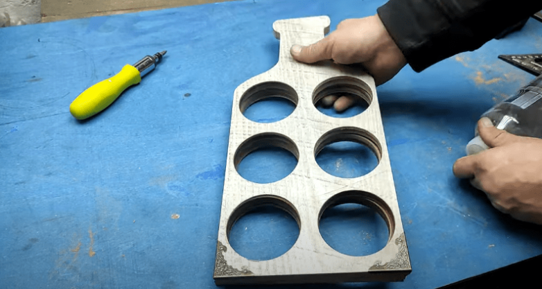 При помощи подходящей коронки намеченные круги вырезаем так, чтобы получились сквозные отверстия.