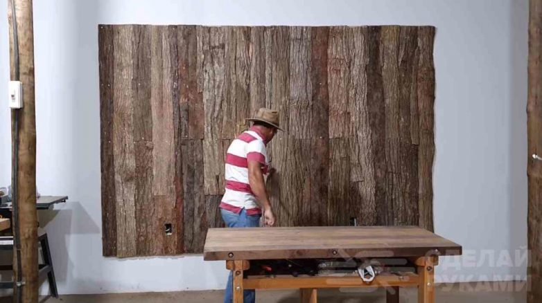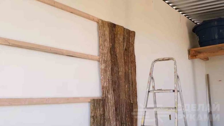 Отделка стены древесной корой