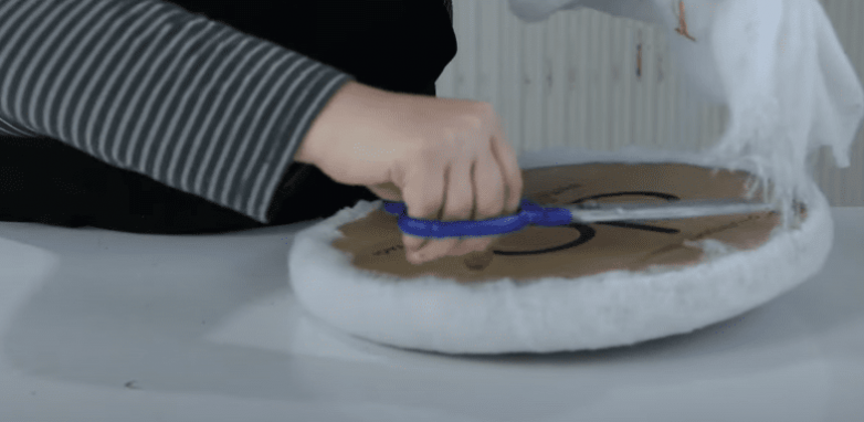Основание для подушки вырезаем также из картона, а затем наклеиваем на нее поролон и несколько слоев синтепона, лишнее обрезаем.