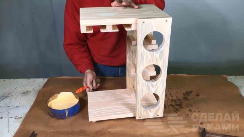 Подробно о том, как сделать своими руками подставку для бутылок, смотрите в видеоролике