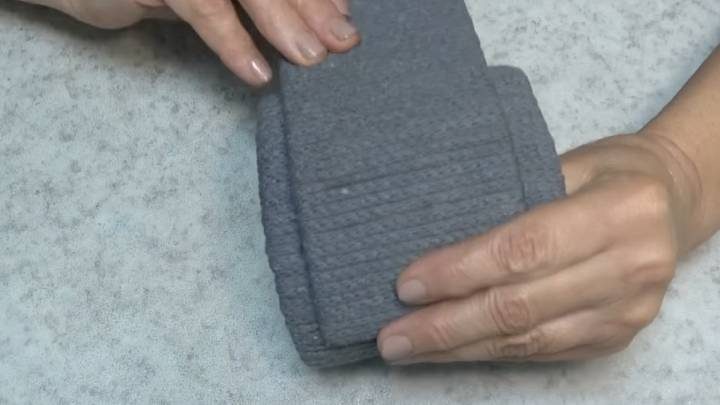 У пластиковой бутылки обрежьте верх и дно — они не понадобятся. Из пряжи наберите цепочку воздушных петель. Оборачивая вокруг обрезанный кусочек пластика, закройте всю поверхность пряжей — внутри и снаружи.