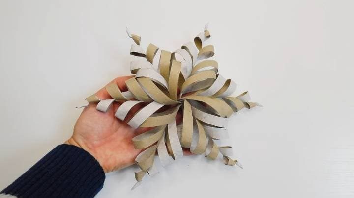 Сделайте чудесную, простую и быструю снежинку из оставшихся втулок от туалетной бумаги! Работа увлекательная, особенно интересно её делать вместе с детьми.