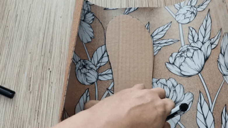 Для основы используем имитацию стелек. Сделать их по большому счету можно из чего угодно. Подойдет даже картон с самоклкейкой или остатки линолеума. Главное, чтобы в этом материале можно было без особых усилий сделать технические отверстия.