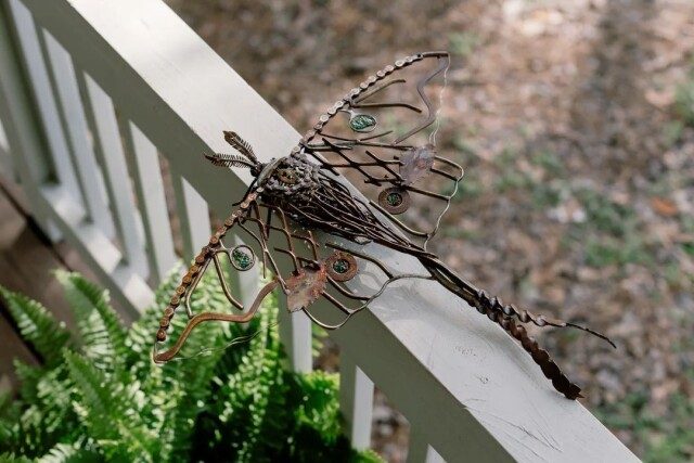 Она заинтересовалась повторным использованием металлолома, и первым её проектом была скульптура виргинского филина, которая и подтолкнула художницу по металлу к продолжающейся серии, изображающей различных диких животных.