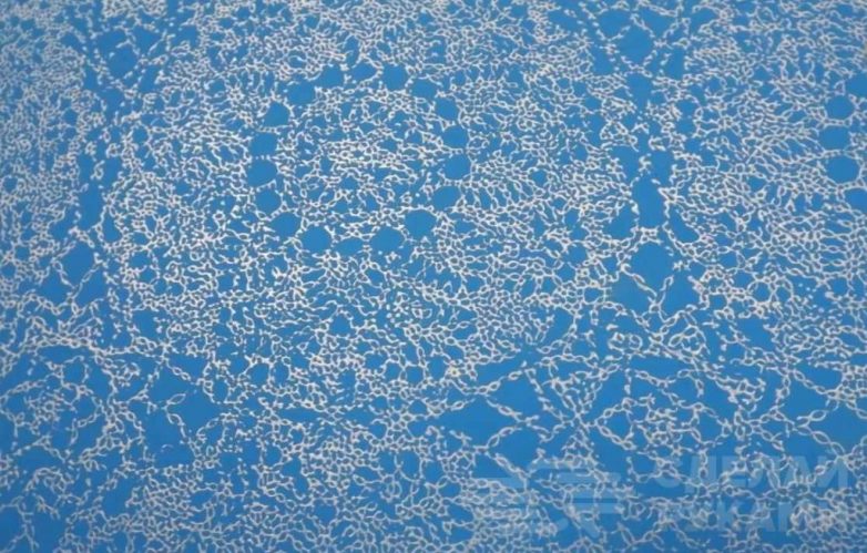 Далее потребуется сделать на стене темный фон. Для этого автор использует белую акриловую водоэмульсионную краску и колер синего цвета. Вы же можете использовать другой колер, какой вам больше нравится.