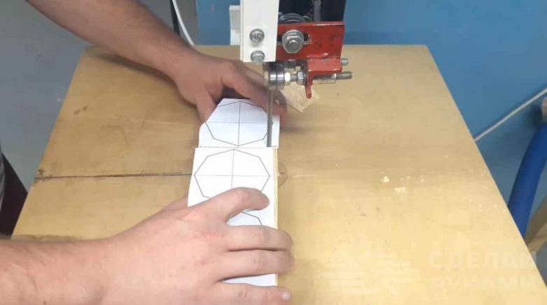 Затем заготовки надо вырезать на ленточной пиле. Если нет ленточной пилы — ничего страшного! Можно вырезать эти заготовки с помощью электролобзика.