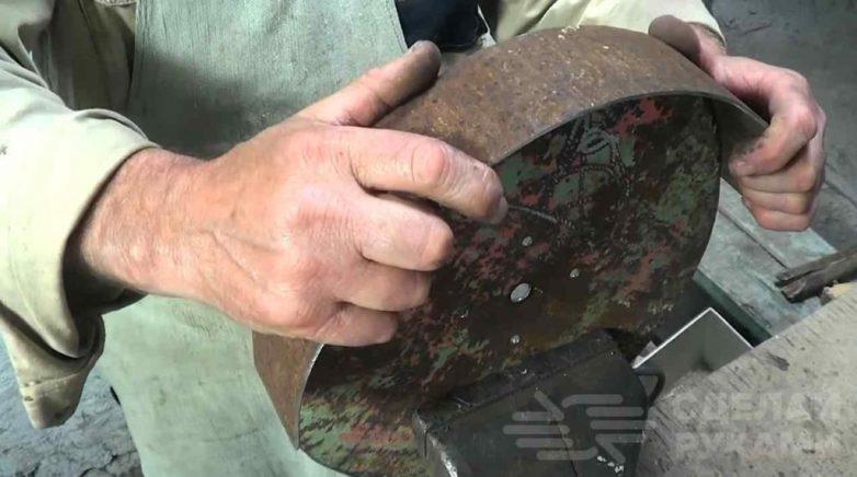 Первым делом из куска листового металла нужно вырезать круг нужного диаметра. Края надо обработать болгаркой с лепестковым диском, чтобы убрать заусенцы.