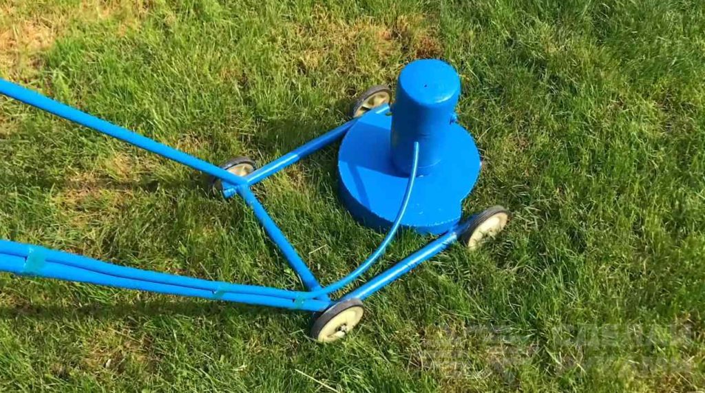 Для удобства к нижней части основания электрической газонокосилки необходимо прикрепить четыре колесика. Сам каркас сварен из круглых труб.