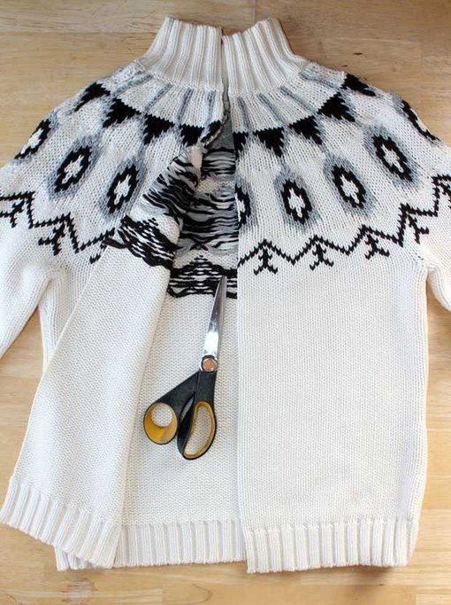 Свитер продолжит согревать вас в холодный день, если сшить из него воротник или шарф