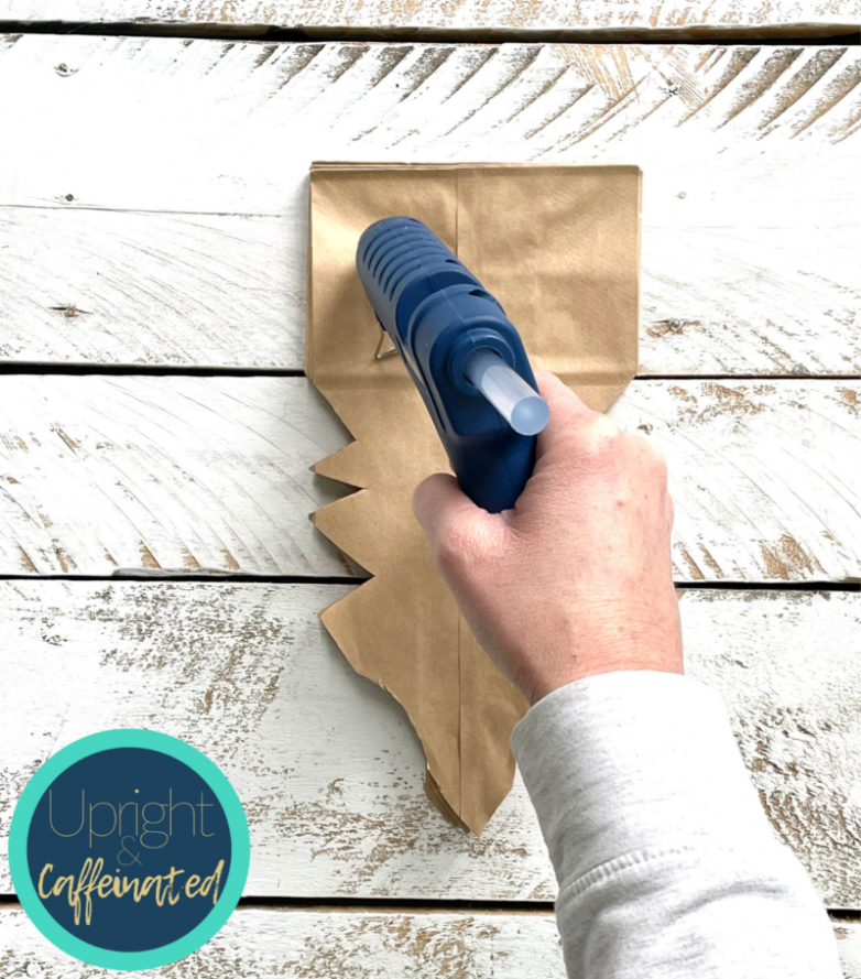 Затем возьмите клей и нарисуйте им букву «Т». Положите следующий пакет прямо сверху и повторяйте, пока все 8 пакетов не будут склеены в стопку
