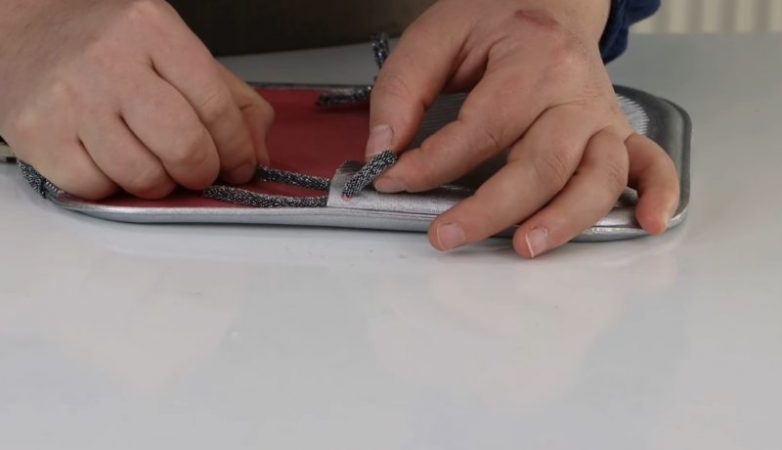 Срежьте резину на передней части грелки так, чтобы сформировать клапан будущей сумочки. Углубите верхнюю часть заготовки.