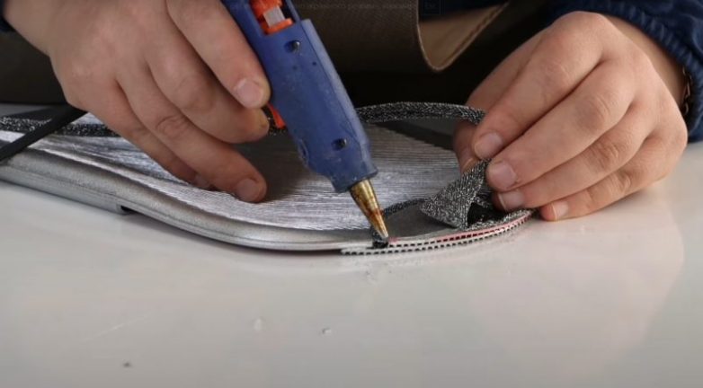 Оформите места соединения деталей трикотажной пряжей подходящего цвета. Для фиксации пряжи используйте горячий клеевой пистолет.