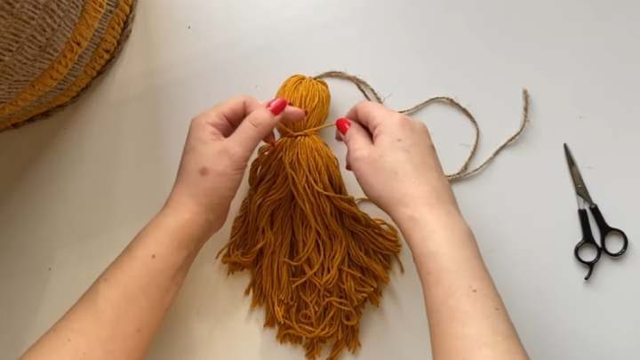 Из джута или пряжи сделайте кисточки.