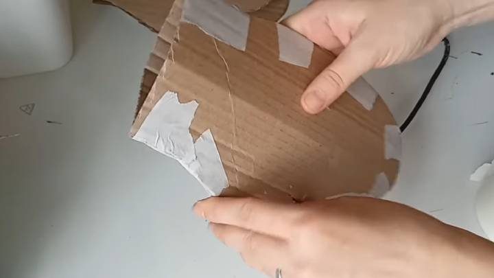 Сверху приклейте вторую часть варежки. Втулка нужна для того, чтобы сделать поделку объёмной. Дополнительно проклейте края малярным скотчем.