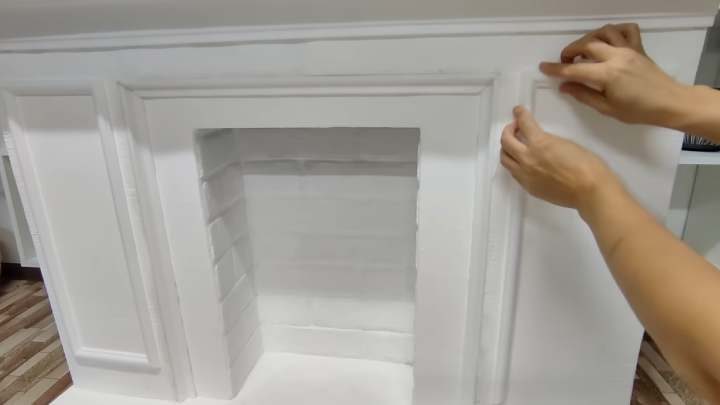 Чтобы камин смотрелся ещё лучше, приобретите копеечные молдинги. Украсьте ими камин. Используйте «жидкие гвозди» (клей).