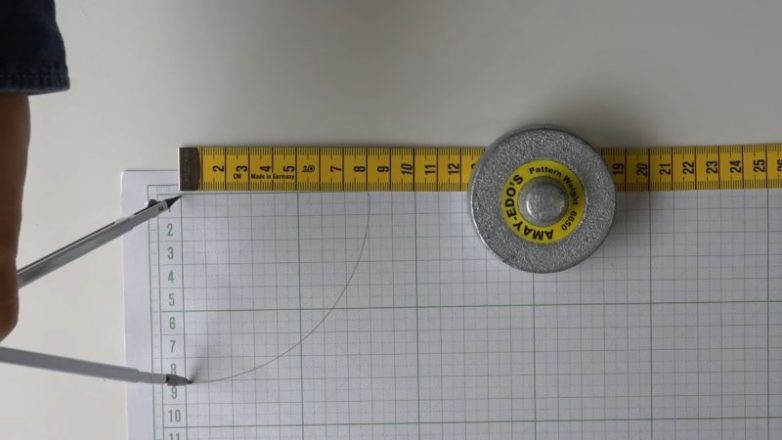 Вырежьте из бумаги шаблон в виде четверти окружности радиусом 8 см.