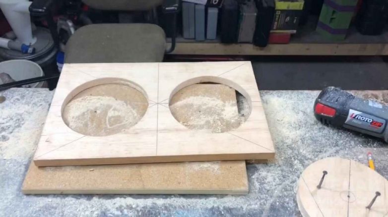 Для начала понадобится разметить и разрезать небольшой лист фанеры (размеры будут зависеть от диаметра самих мисок). В основной «столешнице» нужно вырезать отверстия для мисок. Затем конструкция собирается с помощью клея и саморезов.