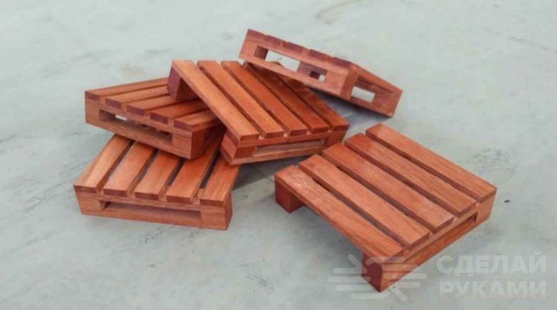 Подробно о том, как сделать своими руками деревянные подставки для кружек в форме поддонов, рекомендуем посмотреть в видеоролике на сайте.