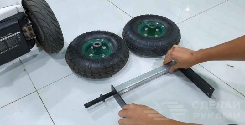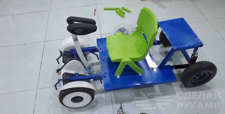 Подробно о том, как своими руками сделать простую двухместную детскую машинку на базе гироскутера, рекомендуем посмотреть в видеоролике на нашем сайте.