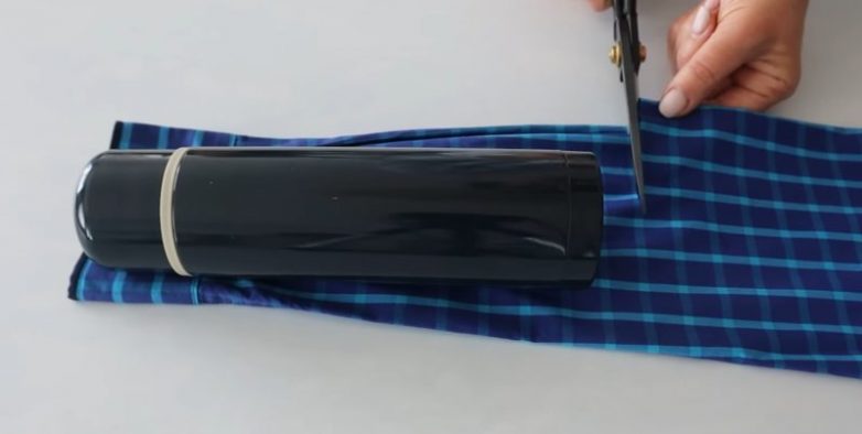 Первая оригинальная идея — сшить из рукава рубашки удобный чехол для термоса. Для этого от манжеты отложите высоту термоса, оставляя 2-3 см в качестве припуска на шов.
