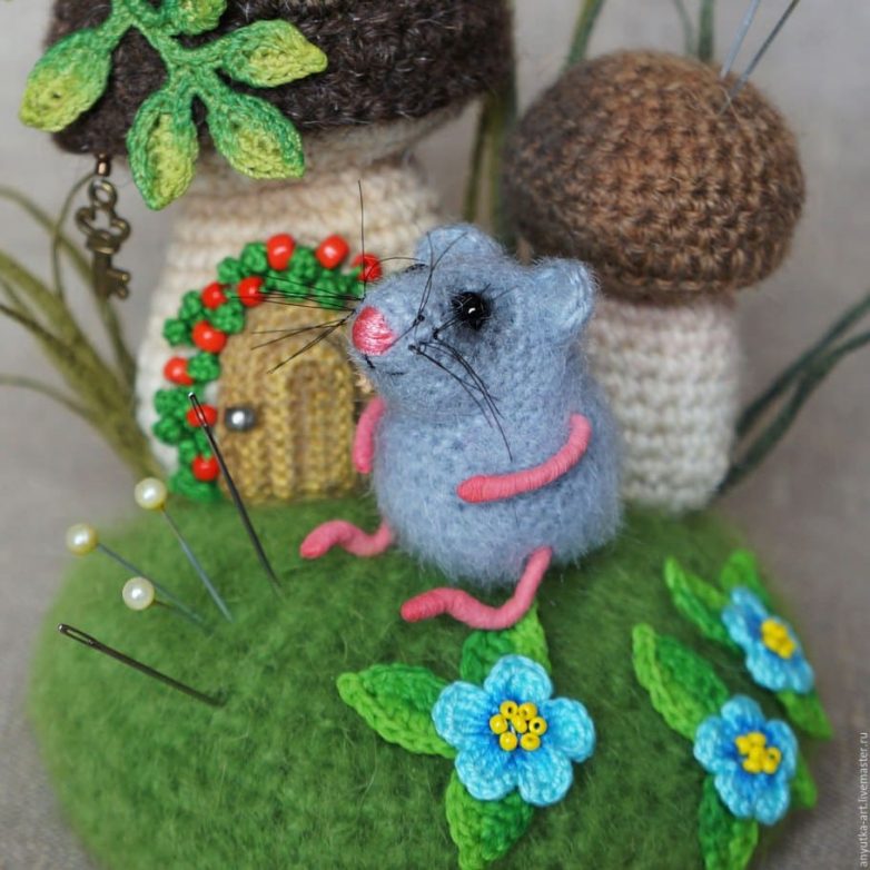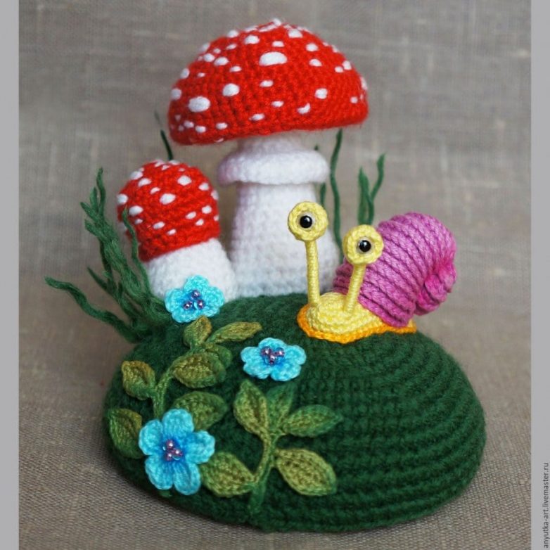 Вязаные композиции станут прекрасным дополнением интерьера. Простор для творчества безграничен: можно связать букет, который украсит гостиную, очаровательных животных, которые поселятся в детской комнате, игрушки для оформления дома во время праздников. Используя разноцветную пряжу, можно даже сделать целые композиции с деревьями, животными, милыми домиками и цветами.