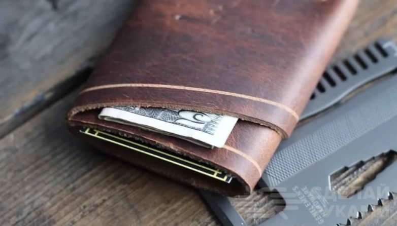 В данном обзоре предлагаем вашему вниманию идею, как сделать стильный мужской бумажник из натуральной кожи для денег и кредиток своими руками. В нем предусмотрено два отделения — отдельно для купюр и отдельно для кредиток.