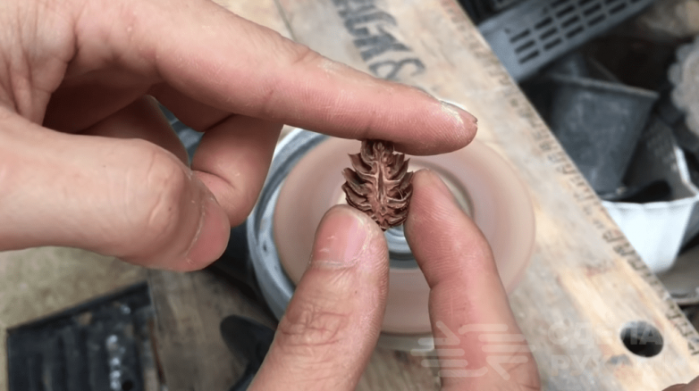 Первым делом необходимо подобрать подходящие по размеру шишки (сосновые, кедровые или ольховые – не имеет принципиального значения). Главное, чтобы они были небольших размеров. На ленточно-шлифовальном станке или при помощи УШМ с лепестковым кругом стачиваем одну сторону шишек, чтобы получилась ровная плоскость.