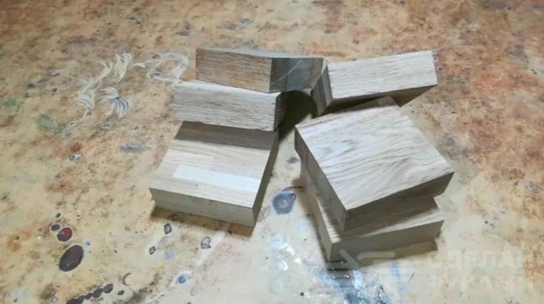 В качестве основного материала для подсвечников мастер использует обрезки дубовой доски, склеенной в широкие дощечки. Также можно использовать цельное дерево, если не жалко его расходовать для изготовления такой мелочевки.