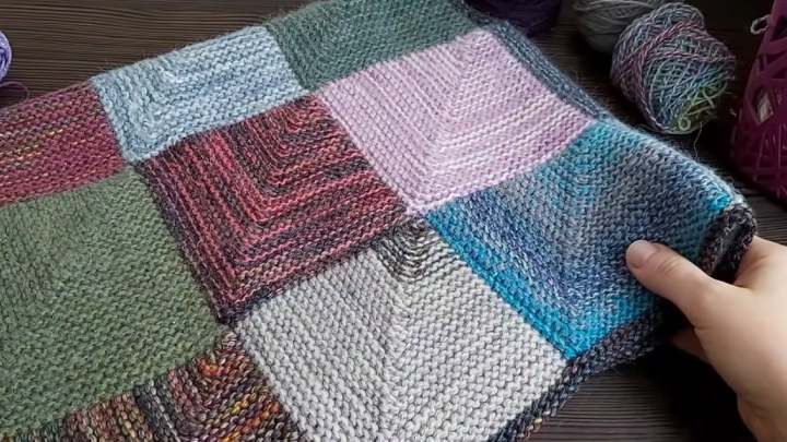 Подробнее о том, как связать плед из квадратов спицами, смотрите в видео ниже: