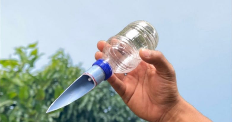 Наберите в бутылку воду и закройте ее подготовленной конструкцией для капельного полива.