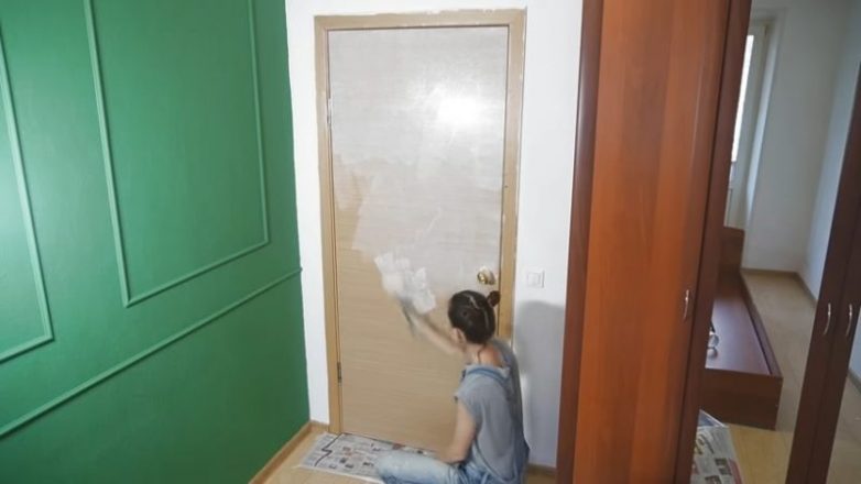 Дверь, шкаф, тумбы также следует загрунтовать и перекрасить, чтобы освежить.