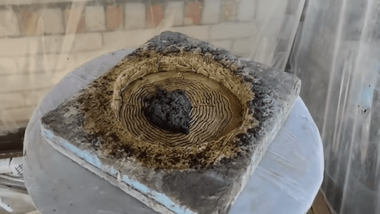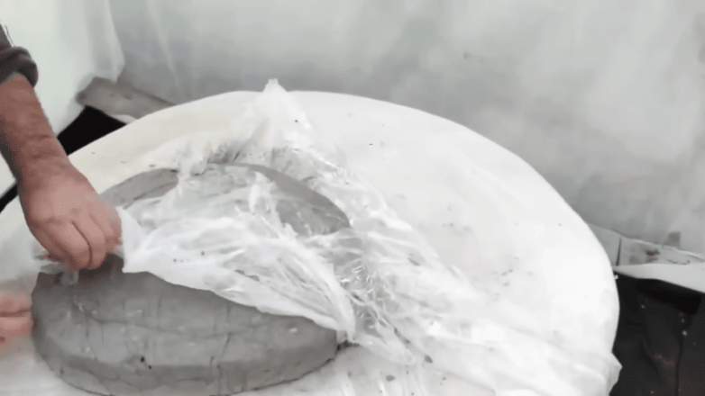 Вынимаем заготовку из формы, убираем целлофан и зачищаем от излишков цементной крошки.