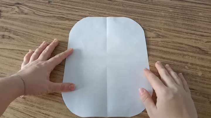 Подготовьте шаблон: на обыкновенном листе бумаги А4 одинаково закруглите края. Выкройка готова!