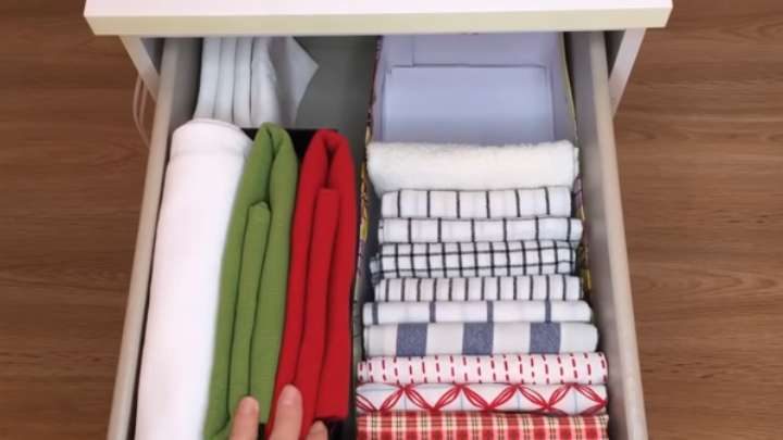 И получатся органайзеры для ящиков и шкафа. В них очень удобно хранить полотенца, скатерти и т. д.