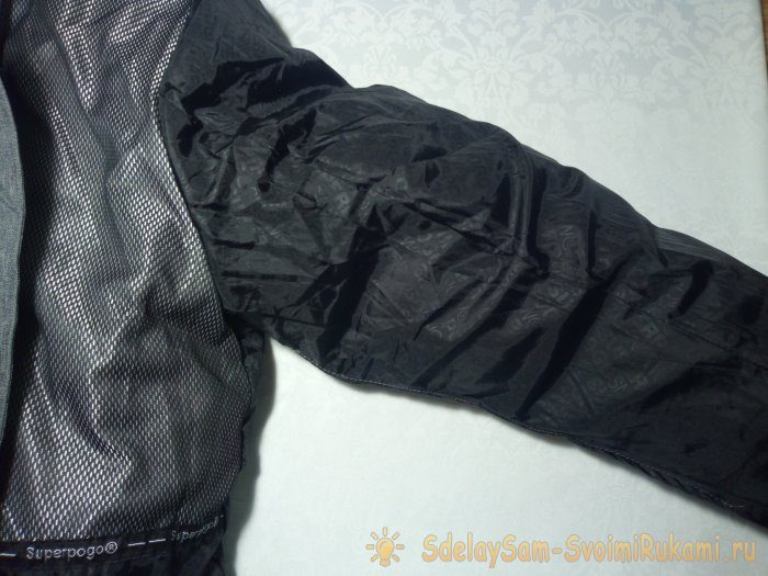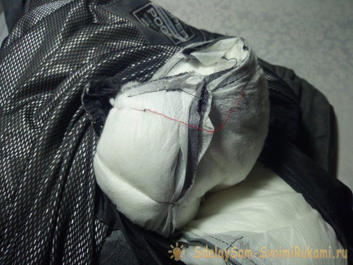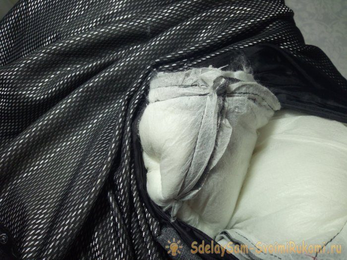 Затем через получившееся техническое отверстие надо вывернуть часть куртки с лопнувшим швом.