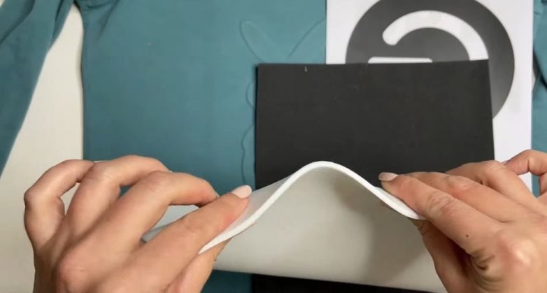 Подготовьте две заготовки из паутинки таким образом, чтобы они были немного меньше детали из Puffy пены.