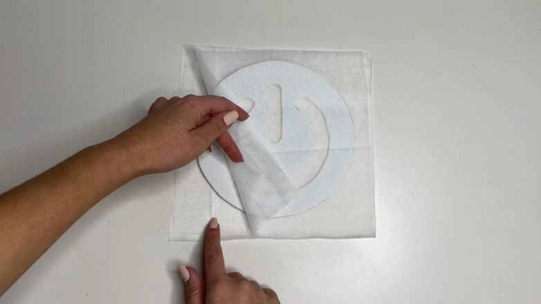 Положите детали друг на друга следующим образом: изнаночная ткань, паутинка, деталь из Puffy пены и еще один слой паутинки.