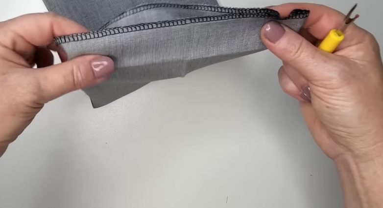 Заутюжьте ткань чуть выше линии шва, формируя видимость фальшивого манжета. Заложите складку и восстановите целостность боковых швов.