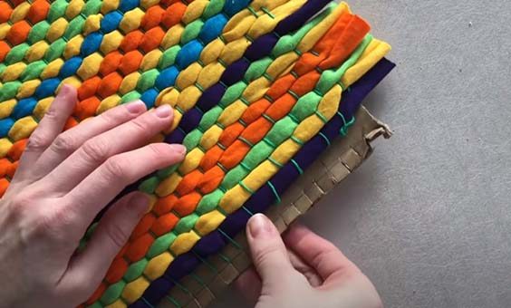 Круглый коврик из старых вещей косичками (без спиц и крючка)