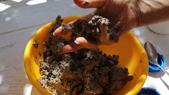 Отжать лишнюю воду. В раствор добавлять клей ПВА до тех пор, пока масса не получится пластичной.