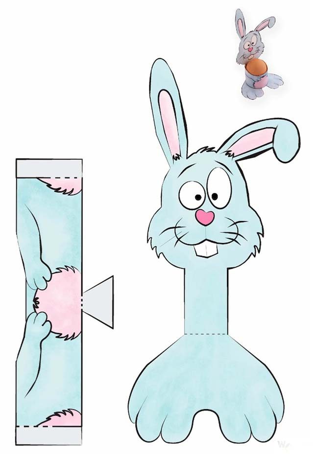 Рисунок в шаблоне тут какой то устрашающий вид имеет, но в склеенном виде получается вполне дружелюбный зайчик.