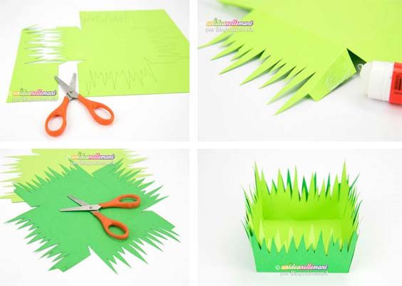 Немножко более сложный вариант корзинки, имитирующей травку. Здесь придется много вырезать.
