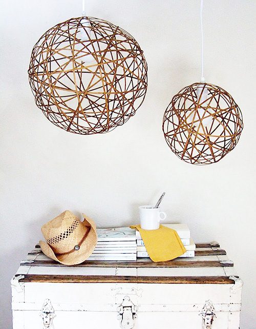Плафон для люстры можно сделать своими руками из весьма доступных материалов. Например, из бамбуковой салфетки, как в первом варианте, из бумажных стаканчиков для кексов или из шашлычных палочек.