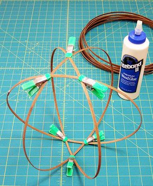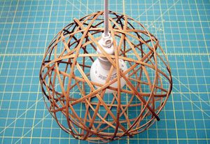 Для работы вам понадобится воздушный шар и клей. Надуваем шарик и по нему склеиваем между собой палочки. После высыхания клея, шарик сдуваем