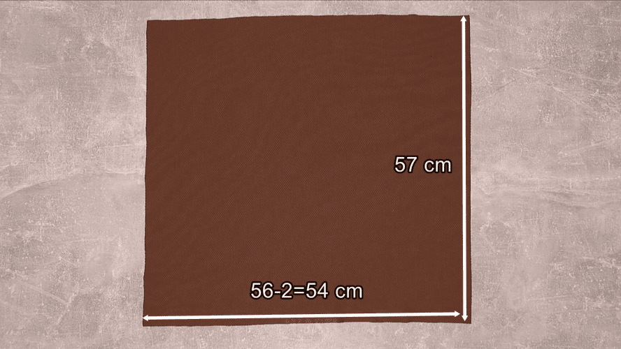 Для пошива подойдут остатки любой эластичной ткани. Их должно быть достаточно для того, чтобы вырезать прямоугольник нужного размера. Замеряем обхват головы. В нашем случае это 56 см. Одну сторону прямоугольника уменьшаем на 2 см, а другую увеличиваем на 1 см.