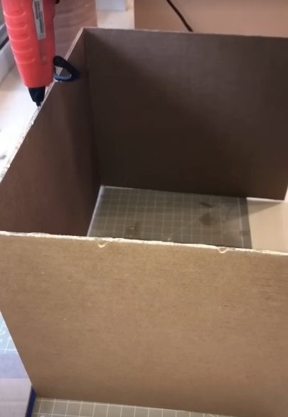 Склейте детали между собой и оставьте до полного высыхания клея. Для того чтобы упростить себе задачу, можно взять уже готовую коробку и обрезать у нее крышку.