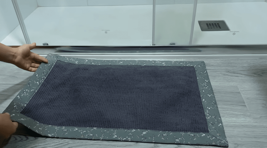 Из пары старых полотенец и остатков хлопковой ткани легко пошить оригинальный двухсторонний коврик для ванной. Мягкий, удобный, отлично впитывающий влагу, он станет незаменимым.